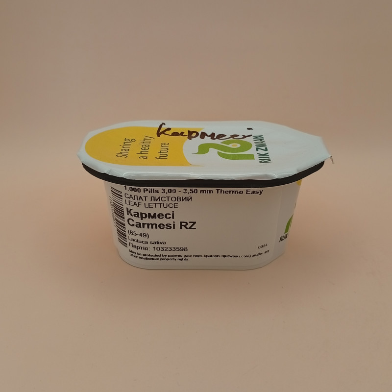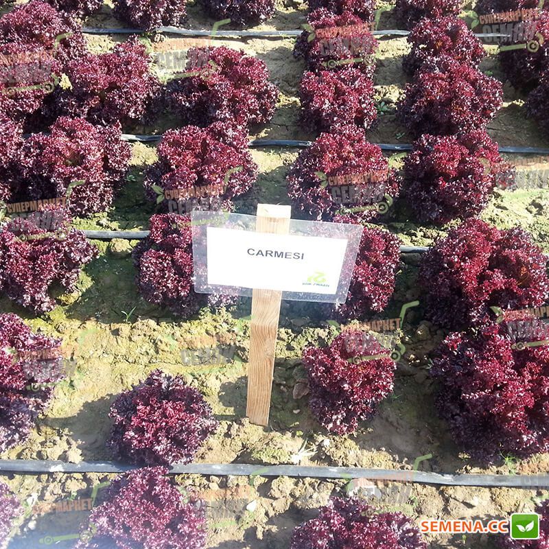 Кармезі - червоний салат типу Лолло Россо, тріппл-ред забарвлення. Всесезонний. 300-350 г. Навесні і восени привабливо-червоний. Влітку - інтенсивно забарвлений в червоний колір з відтінком чорного.