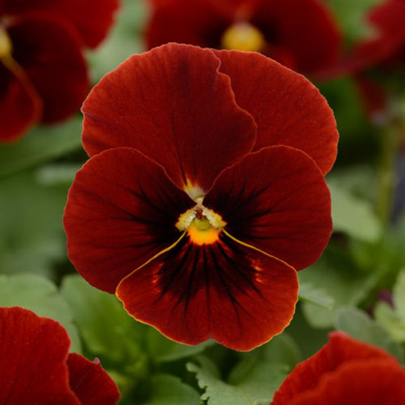 Віола Сорбет F1 XP червона з вічком (Viola cornuta Sorbet F1 red with blotch) – морозостійка компактна серія.
