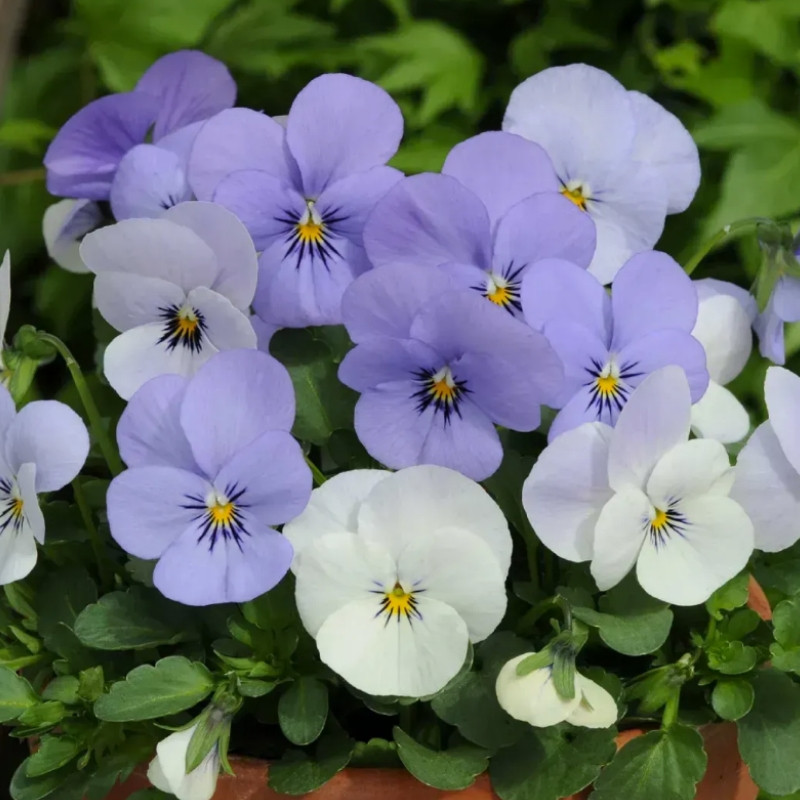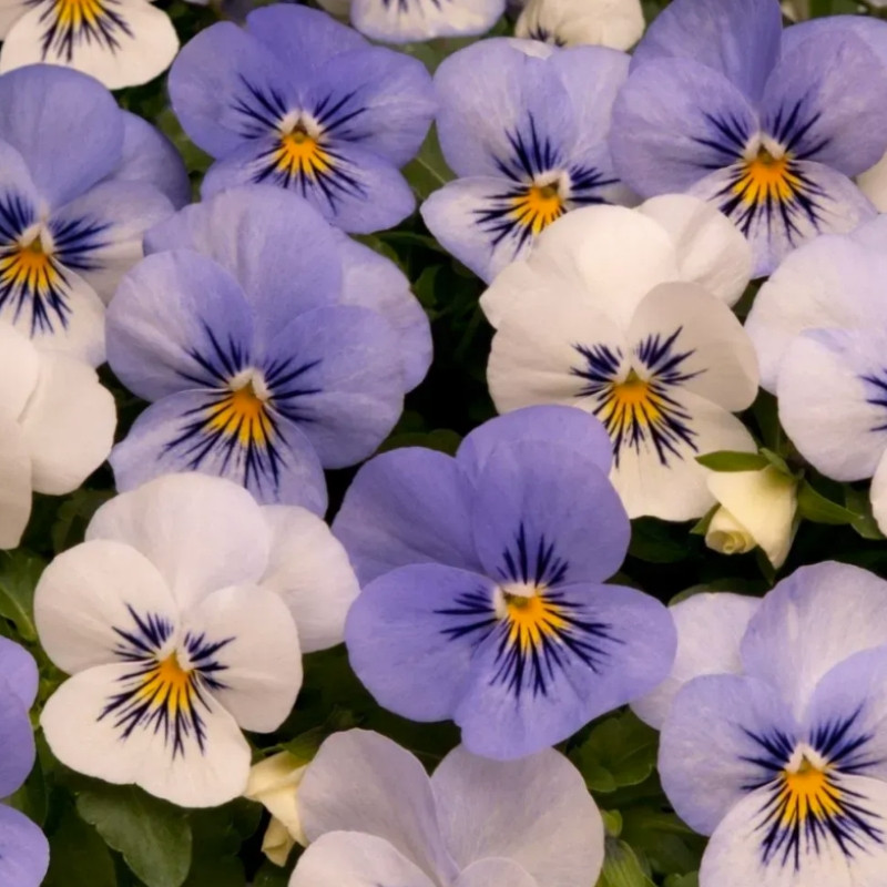 Віола Сорбет F1 XP ест тудей туммороу (Viola cornuta Sorbet F1 yest today tomorrow) – морозостійка компактна серія.