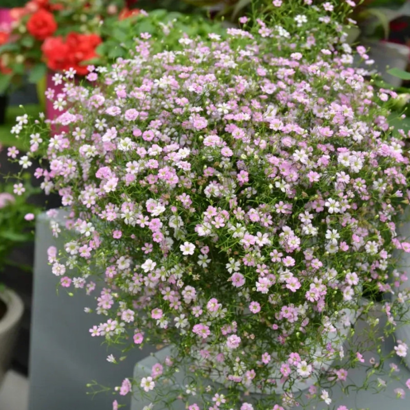 Гіпсофіла Гіпсі рожева – ажурний кущ кулястої форми, рясно гілкується прямо від основи.