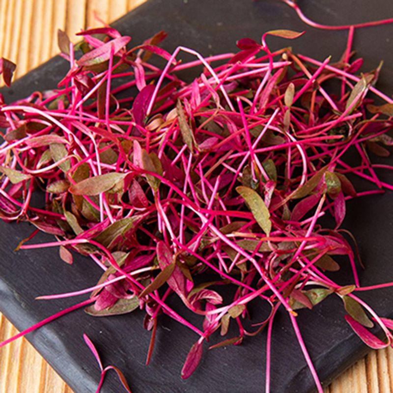 Мікрозелень амаранту червоного – це молоді паростки рослини, у яких міститься максимально можлива кількість вітамінів, мінералів, інших корисних речовин і клітковини.