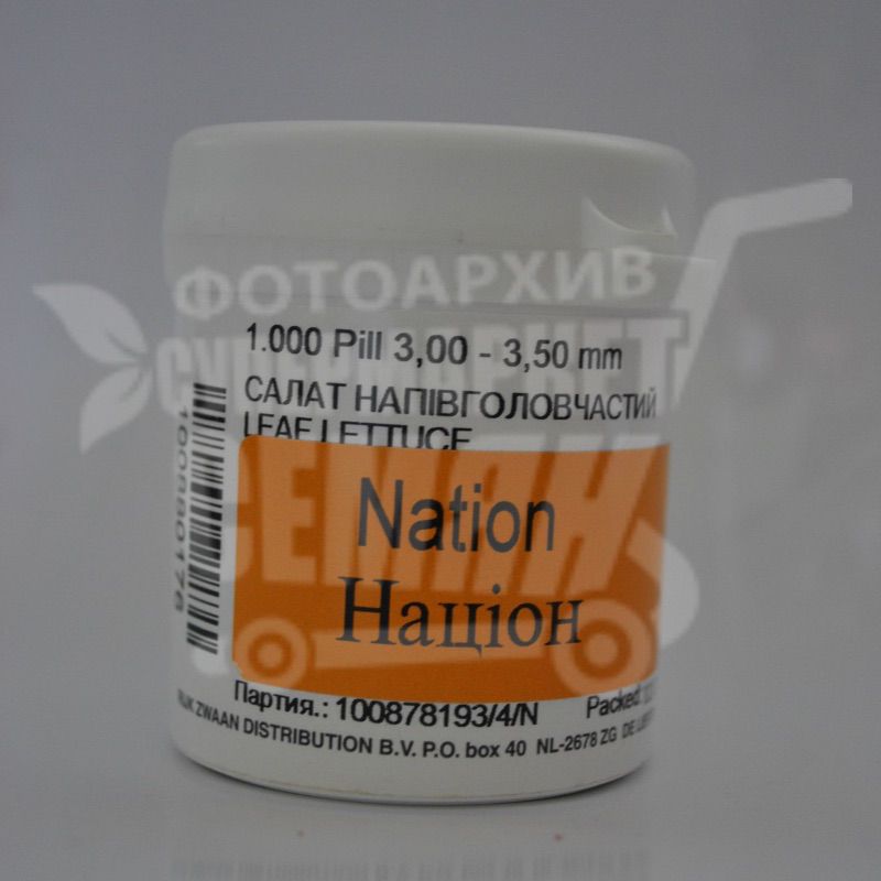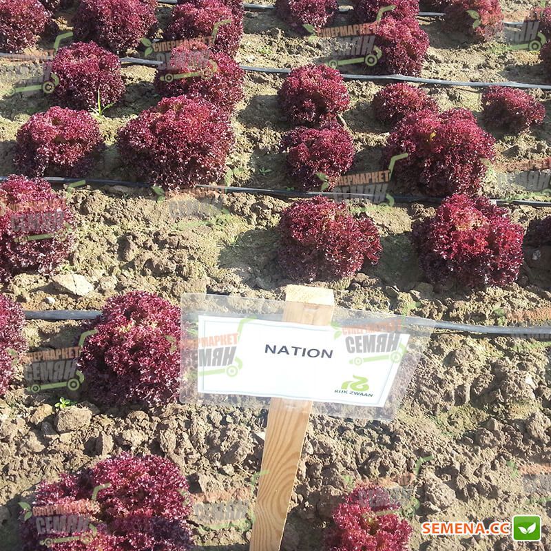 Нейшн дражоване насіння салату тип Лолла Росса від Rijk Zwaan. Володіє високою стійкістю кореневої і листової попелиці, мучнистої роси. Головка відкрита, розміром від середнього до великого. Забарвлення красива, темно-червона. Листя пофарбовані до заснування в червоний колір. Використовується для їстівних прикрас. Збирання врожаю проводять з літа по осінь.