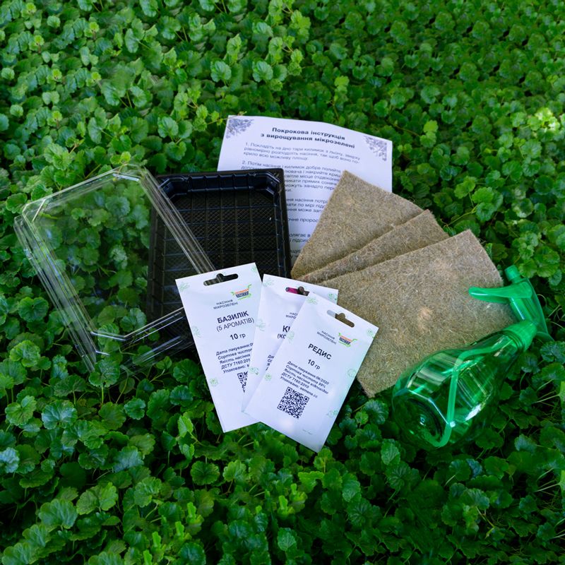 Набір для вирощування мікрозелені Ароматний сет: базилік 5 ароматів, редис, кінза – набір, який додасть приємний аромат стравам.