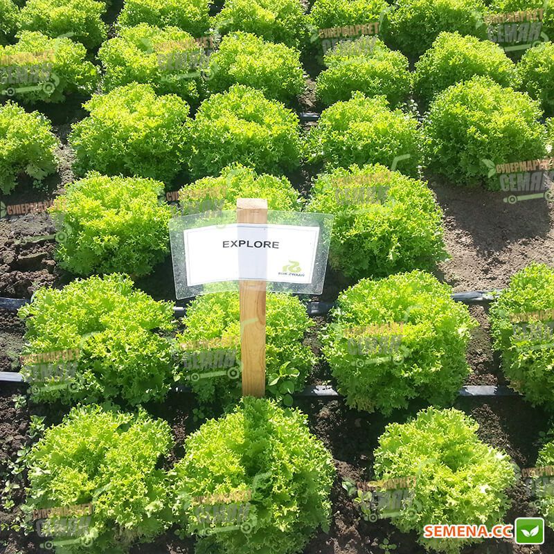 Салат Експлор - є сортом тип Саланова. Насіння дражировані. Характеризується тим, що має приємний смак, зеленого кольору, сильно розсічені листя, володіє масою в середньому до 500 грам. Сорт добре стійкий до борошнистої роси, попелиці, внутрішньому некрозу, перепадів температур, стрілкування. Добре транспортується, зберігається. Рекомендується висаджувати з початку квітня до вересня або круглий рік в закритому грунті. Допускається як ручне прибирання так і механічне. Містить в 4 рази більше листя, ніж аналогічні сорти.