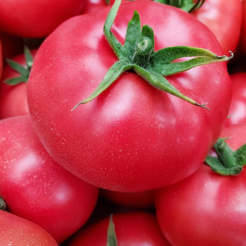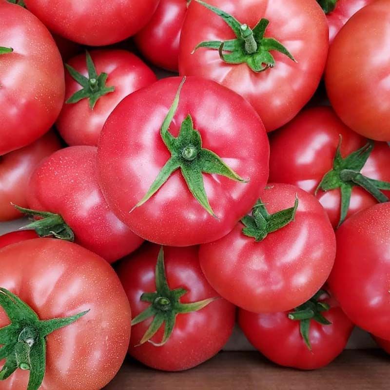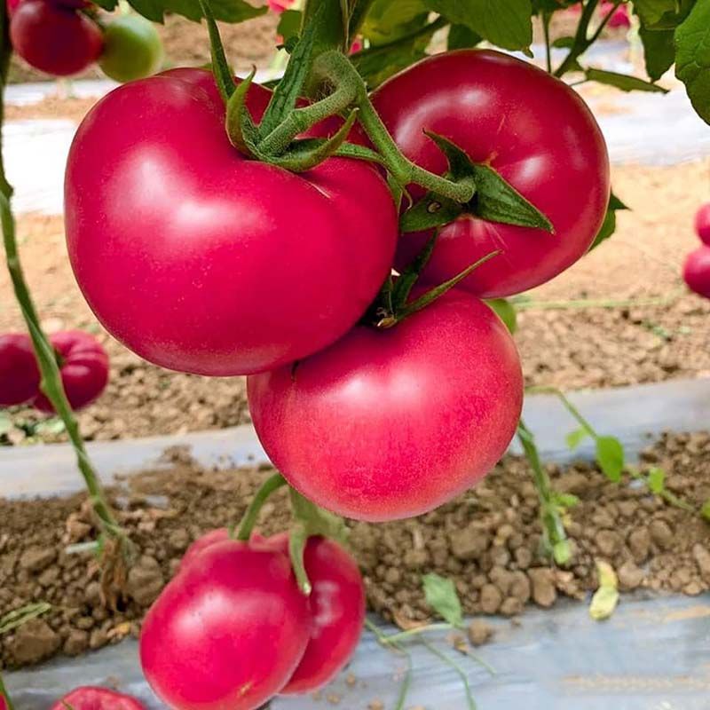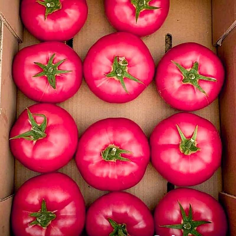 Характеристика плодів – Формує на кисті 4-5 плодів округло-плескатої форми, великого розміру (вагою 220-240 г). Томати дуже щільні, насичено-рожевого кольору з характерним яскравим відблиском, мають високу стійкість до розтріскування. Дуже висока однорідність плодів за розміром і формою.