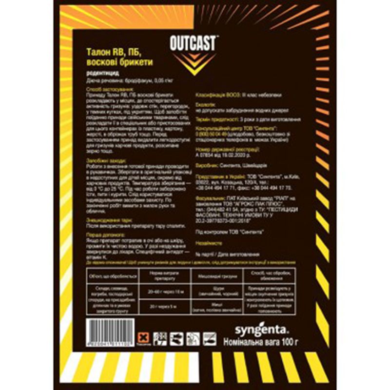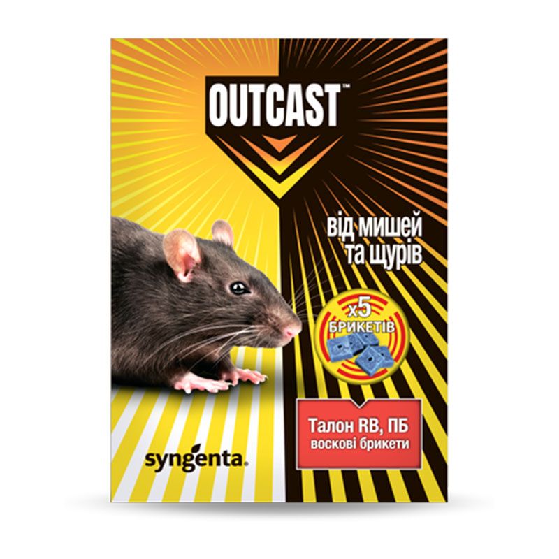 Родентицид Талон RB ПБ (воскові брикети) – перевірений засіб для боротьби за будь-яких погодних умов з гризунами: щурами (звичайним, чорним), мишами (домашньою, полівкою звичайною).