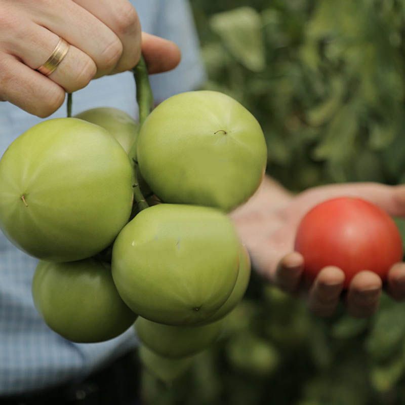 Характеристика плодів – Формує на одній кисті по 6-8 плодів дуже високої якості. Плоди округло-плескатої форми, рожевого кольору, солодкі і цукристі, без зеленої плями біля плодоніжки. Вага – 180-200 г. Плоди щільні і стійкі до розтріскування.