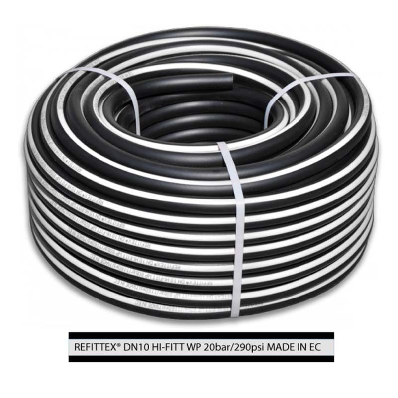 Шланг високого тиску REFITTEX 20 bar 10х2,5 мм – тришаровий шланг, виготовлений з гнучкого ПВХ і армований хрестоподібною поліестеровою опліткою, використовується для транспортування повітря і рідин при постійному високому тиску.