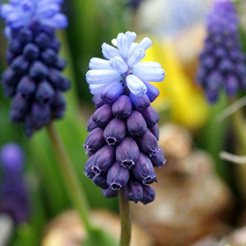 Мускарі Латіфоліум (Latifolium) – цибулинна рослина з бочковидними квітками, акуратно зібраними в кисть.