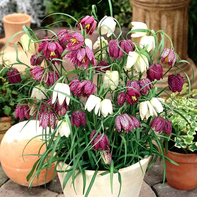 Шахові рябчики бувають різних кольорів: пурпурно-фіолетові, рожеві та білі. У білих сортів «шаховий» візерунок на пелюстках квітки виявляється слабше.