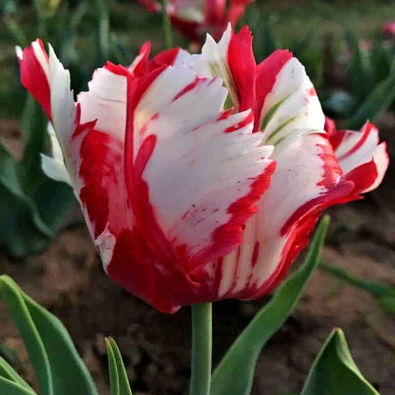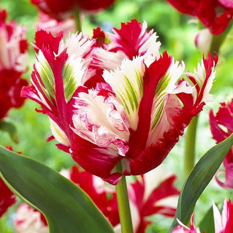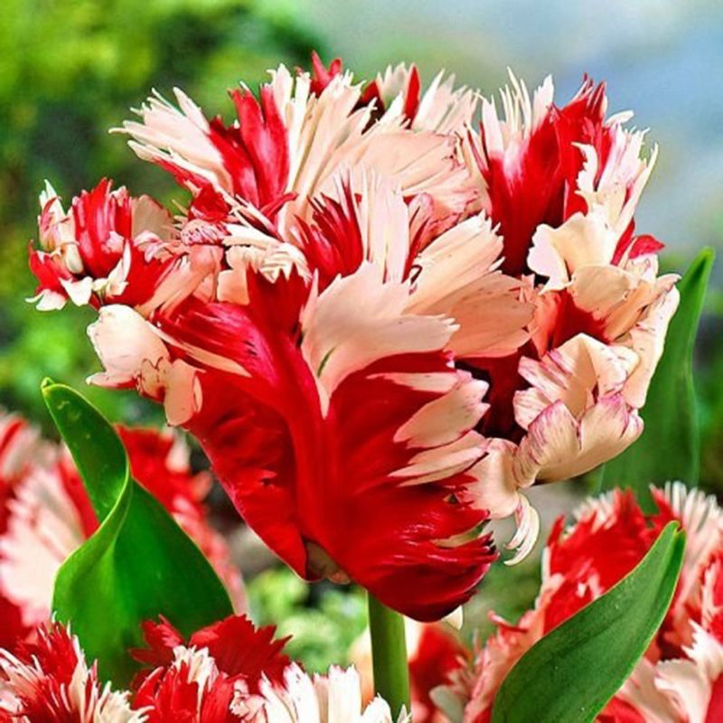 Тюльпан Естела Рійнвелд (Estella Rijnveld) – малиновий попугаячий тюльпан з молочно-білим пір'ям по краях пелюсток, який стане справжньою прикрасою Вашого саду.