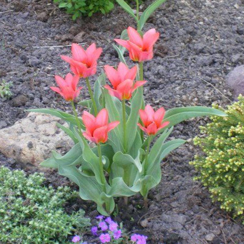 Досить низькорослі (20-30 см) тюльпани, мають великі квітки з широкою основою і злегка відігнутими назовні кінчиками пелюсток. Забарвлення квіток переважно червоних тонів, помаранчеве або двоколірне.