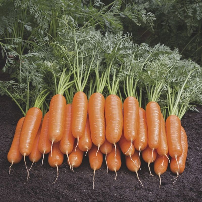 Характеристика плодів – Формує довгий, гладкий, циліндричний коренеплід з незначним переходом на конус. Має солодкий смак і яскраве помаранчеве забарвлення. Коренеплоди однорідні, мають високий вміст каротину.
