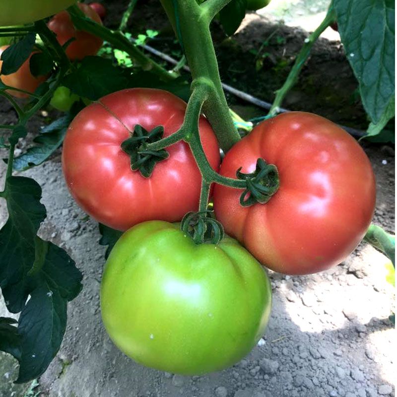 Характеристика плодів – Великоплідний томат (200-230 г), округлої форми. Рівномірного рожевого забарвлення як всередині, так і зовні.
