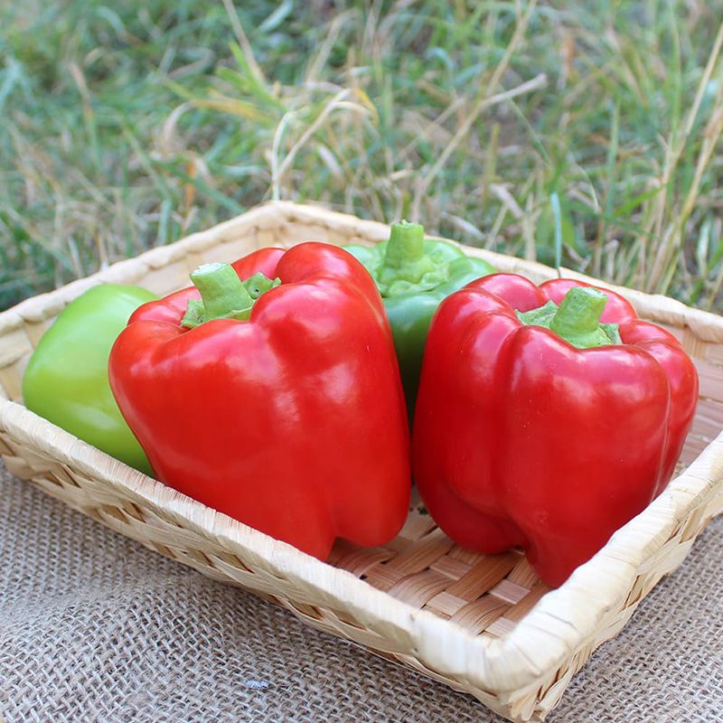 Характеристика плодів – Гібрид формує високої однорідності, вирівняні, короткокубовидні плоди розміру 9х8 см, товщина стінки – 6-7 мм. Колір у технічній стиглості – зелений, у біологічній – насичений червоний. Відмінні смакові якості. Вага плоду – 180-220 г.