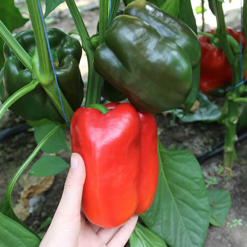 Характеристика плодів – Гібрид формує однорідні плоди, кубовидної форми, розміру 14-15х 7-9 см, товщина стінки – 7 мм. Колір у технічній стиглості – зелений, у біологічній – червоний. Має високі смакові і товарні якості. Вага – 320-380 г.