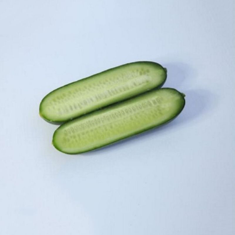 Характеристика плодів – Високоврожайний гібрид подовженої форми, близько 8-10 см, гладкий, блискучий, темно-зеленого відтінку. Соковитий смак без гіркоти. Щільна структура з невеликою насіннєвою камерою.