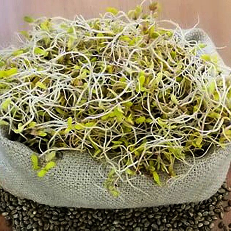 Покладіть на дно тари обраний субстрат і зверху рівномірно розподіліть насіння, так щоб вони покрили всю площу, уникаючи утворення грудок. Потім насіння і субстрат добре зволожте з розпилювача. Після поливу накрийте тару кришкою і поставте в тепле темне місце.