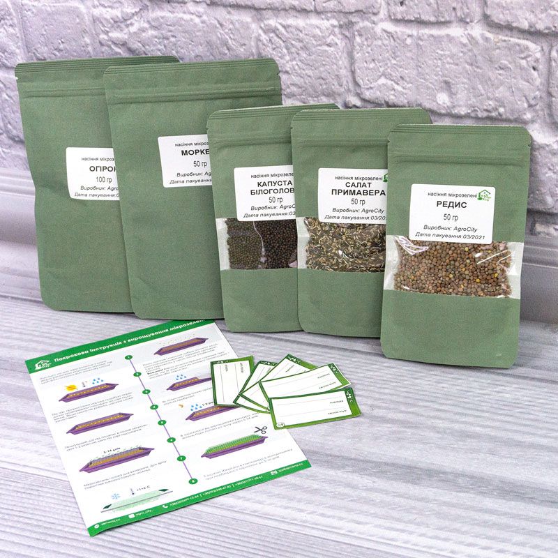 Набір насіння мікрозелені Фітнес (капуста білоголова, морква, огірок, редис, салат Прімавера) – набір мікрогріна, що містить насіння рослин, які сприяють витривалості організму і схудненню.
