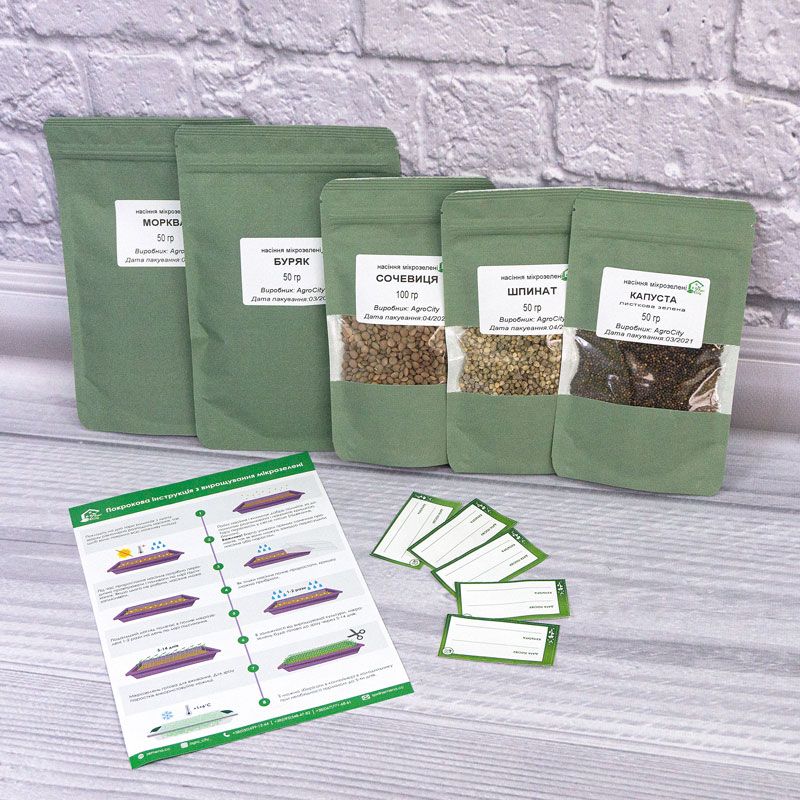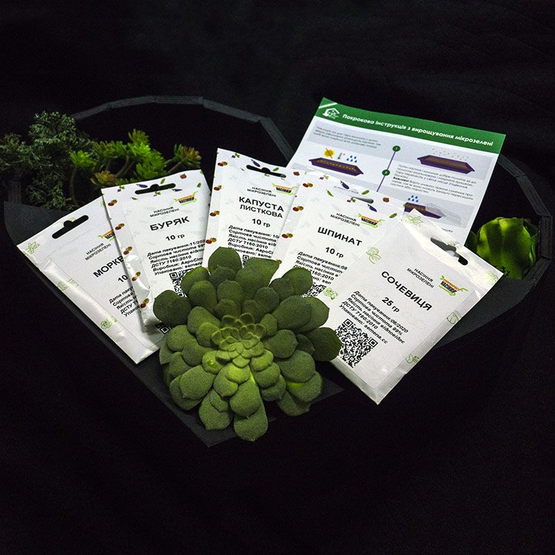 Набір насіння мікрозелені Б'юті (морква, шпинат, капуста Кале, сочевиця, буряк) – це набір мікрозелені, який добре розкриває і вдало доповнює смак страв.