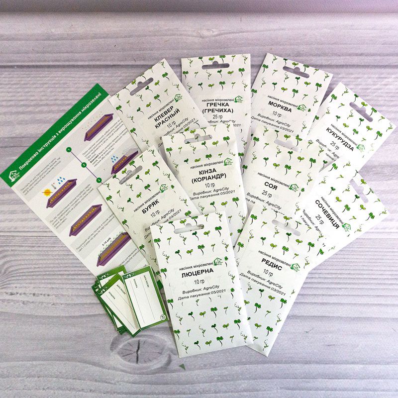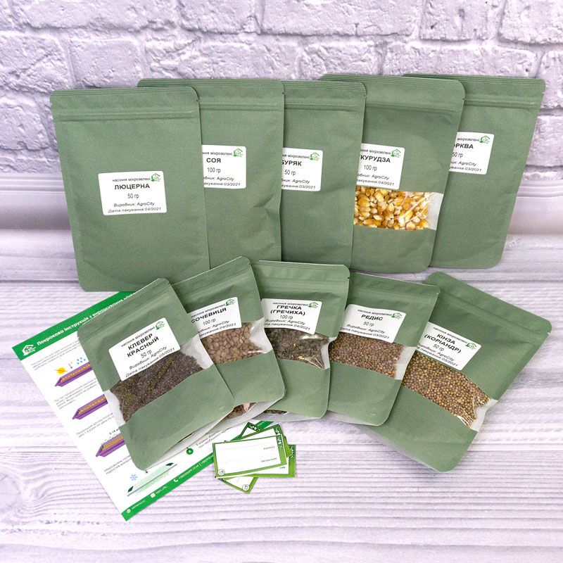 Набір насіння мікрозелені Економ 10 (гречка, кінза, конюшина червона, кукурудза, люцерна, морква, редис, буряк, соя, сочевиця) – набір мікрозелені, який поповнить ваш організм поживними речовинами і вітамінами.