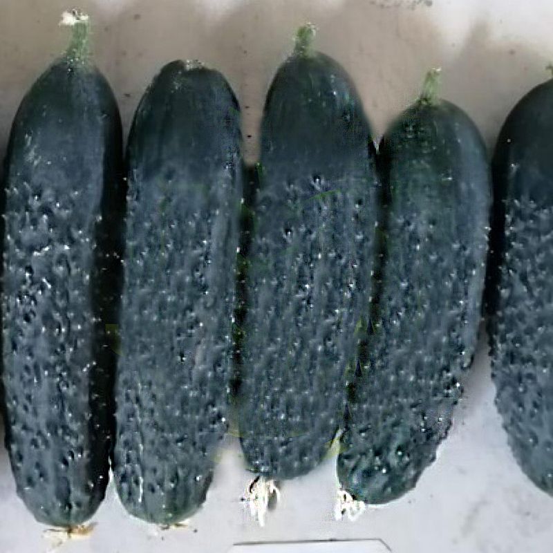 Характеристика плодів – Плоди темно-зеленого забарвлення, крупнобугорчасті з відмінними смаковими якостями і внутрішньою структурою. Співвідношення довжини плоду до товщини (діаметра) – 3,2:1,0.