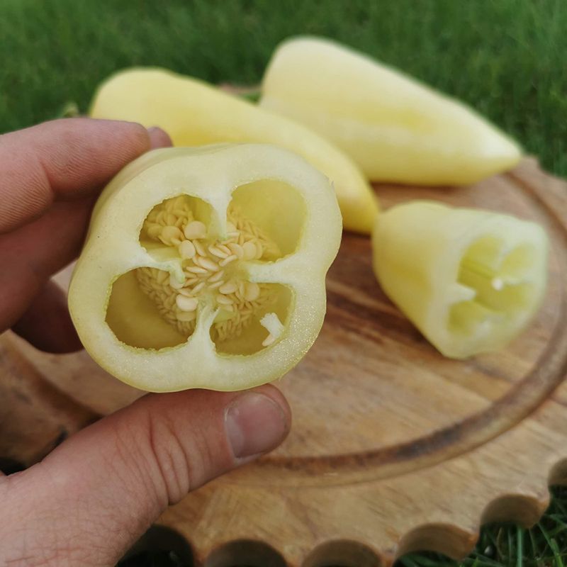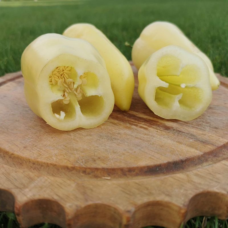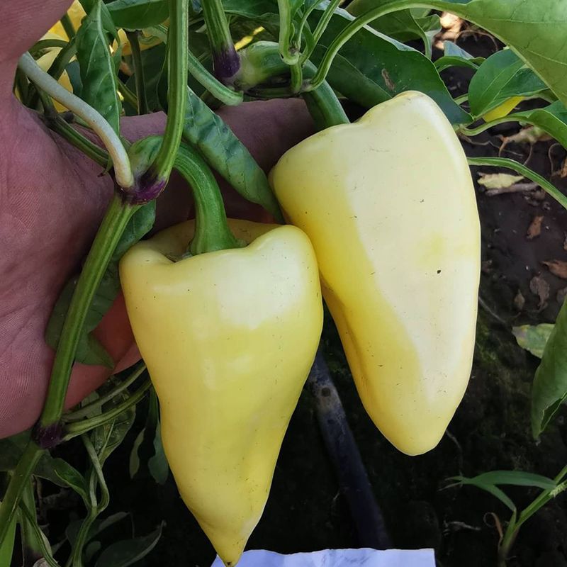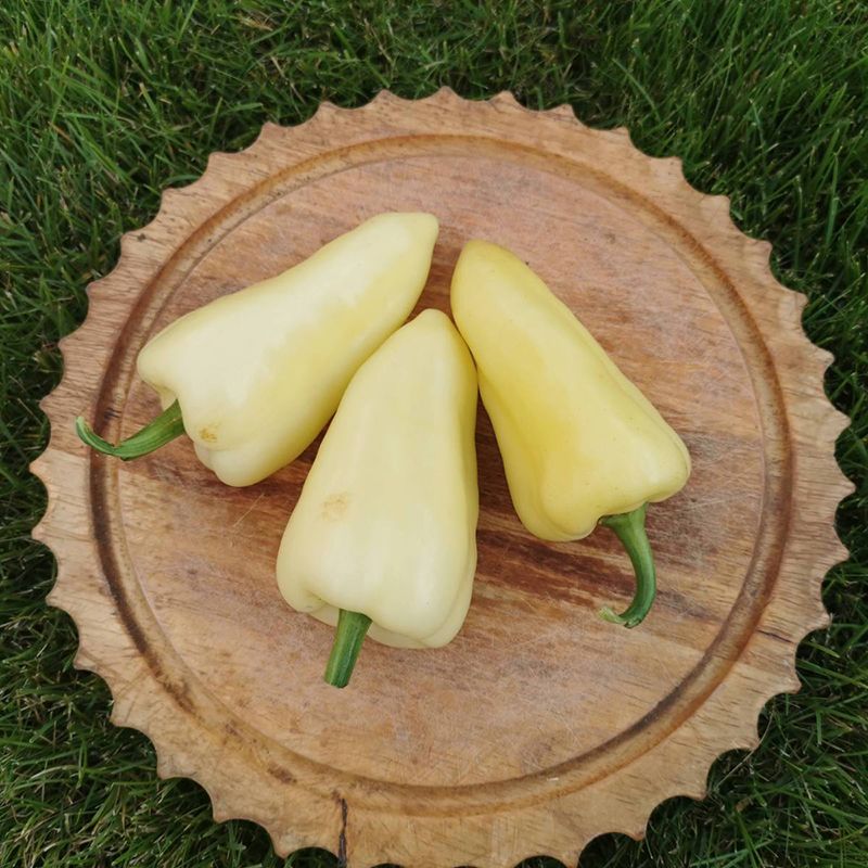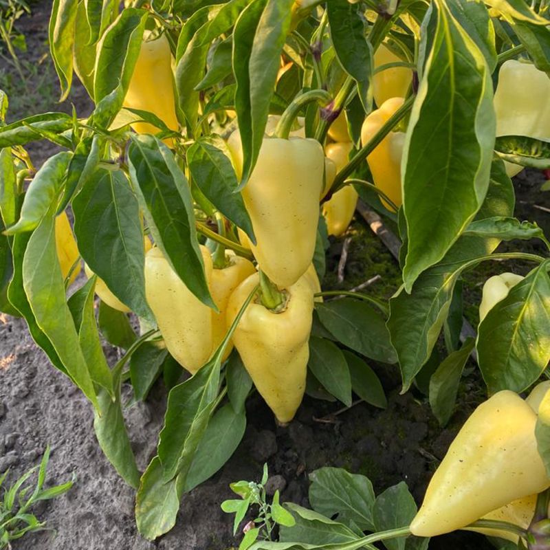 Характеристика плодів – Класичний конічний перець. Колір у технічній стиглості – світло-кремовий, у біологічній – помаранчевий, розмір – 10х5 см, товщина стінки – 5-6 см. Плоди солодкі і соковиті. Насіннєва камера велика.