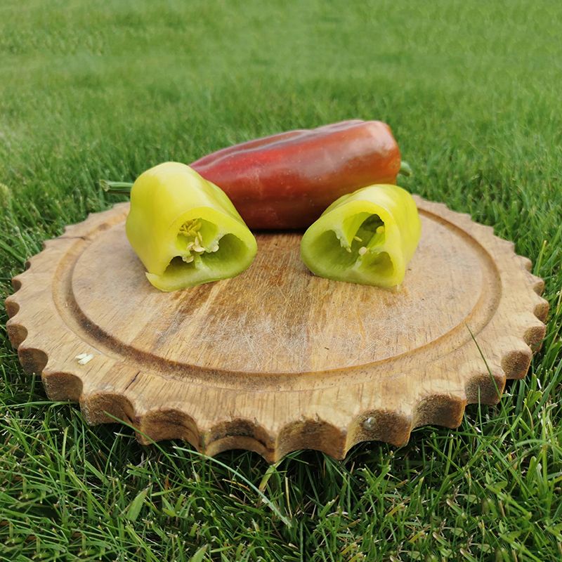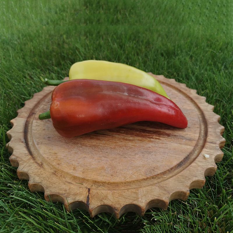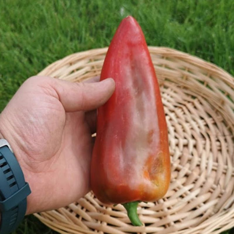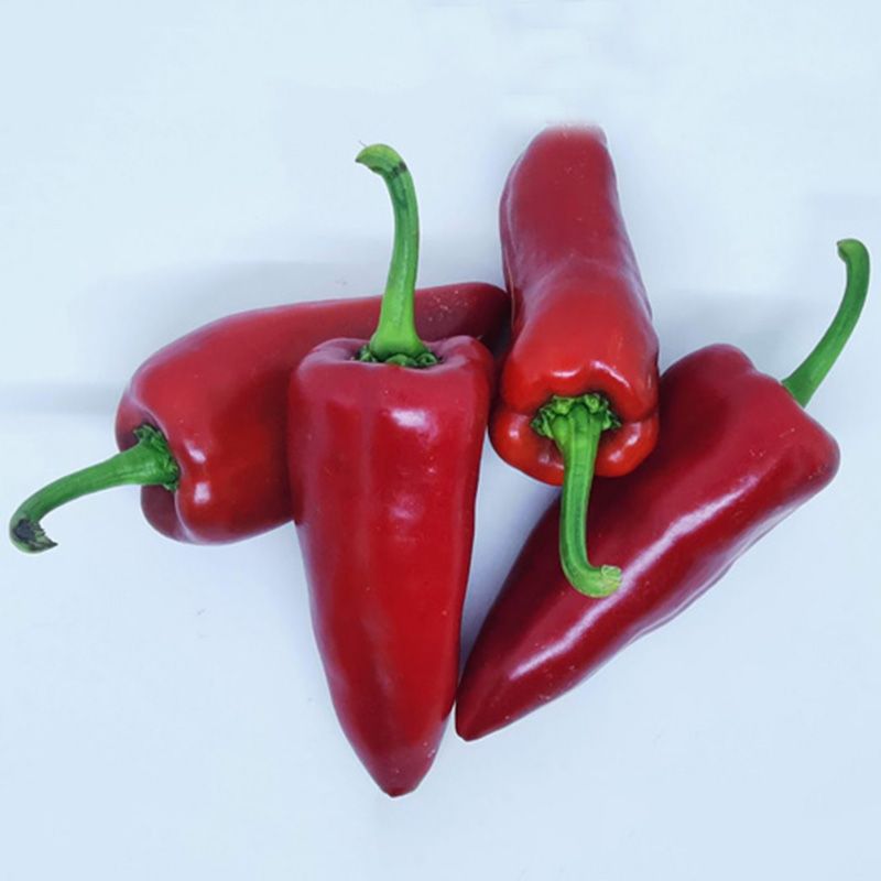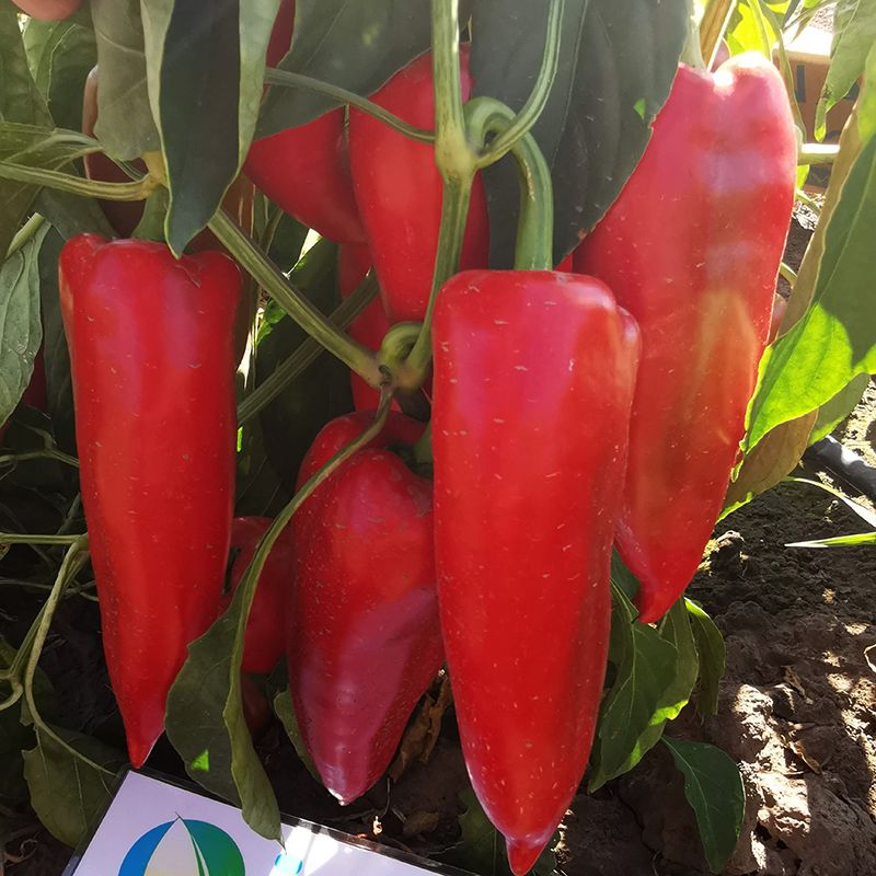 Характеристика плодів – Плоди м'ясисті і щільні з блискучою поверхнею, конічної форми. Колір у технічному дозріванні – світло-зелений, у біологічному дозріванні – насичено-червоний. Дуже однорідна правильна товарна форма. Ширина плода в середньому 7 см, довжина близько 12-14 см. Товщина стінки – 4-5 мм. Вага плоду – 110-125 г.