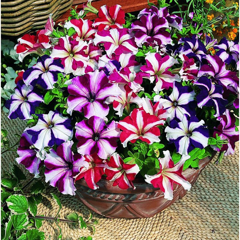 Петунія грандіфлора Ультра F1 зоряна суміш (Petunia grandiflora Ultra F1) – надійна і перевірена часом крупноквіткова петунія.