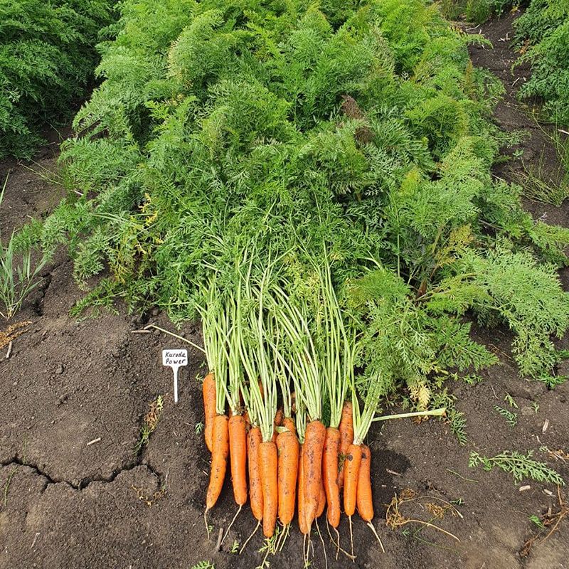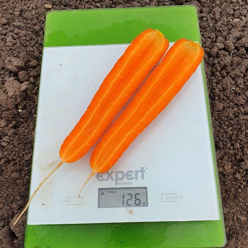 Характеристика плоду – Коренеплоди насиченого помаранчевого кольору, гладкі, конічної форми, подовжені з тупим кінчиком. Відмінний зовнішній вигляд. Розмір коренеплоду – 18-20х3-4,5 см (залежить від ґрунту і густоти).
