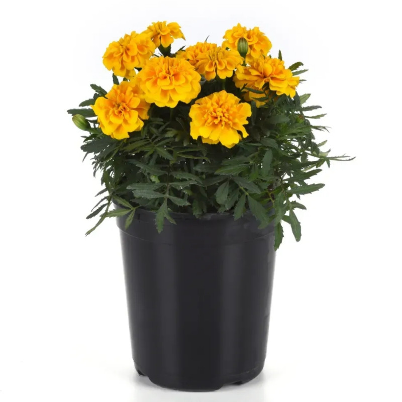 Чорнобривці Бонанза Єлоу французькі розлогі (Tagetes patula Bonanza Yellow French Marigold) – це серія, яку потрібно вибрати, якщо ви хочете збільшити продажі своєї упаковки. Ця популярна серія забезпечує ранньостиглість, великі квіти, однорідність і чудові характеристики в самих різних умовах.