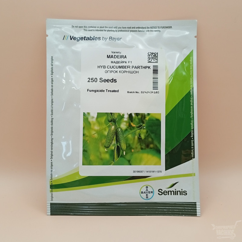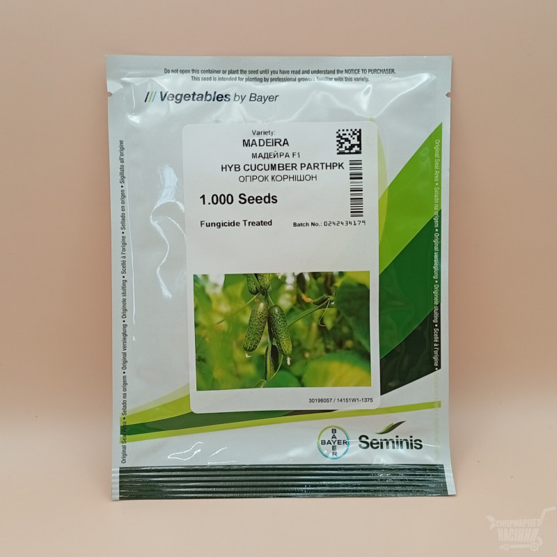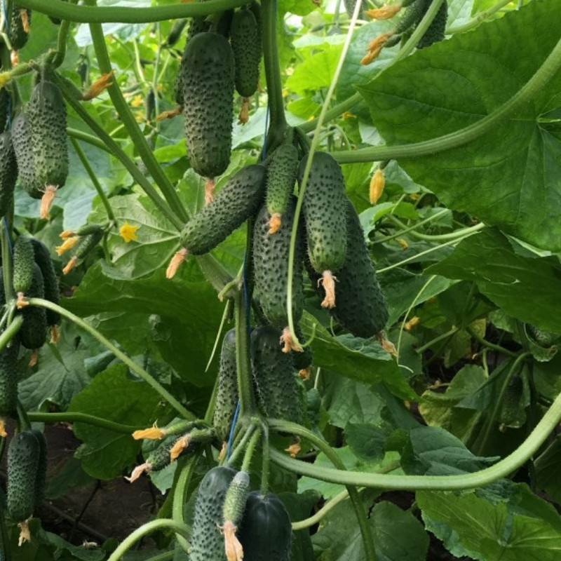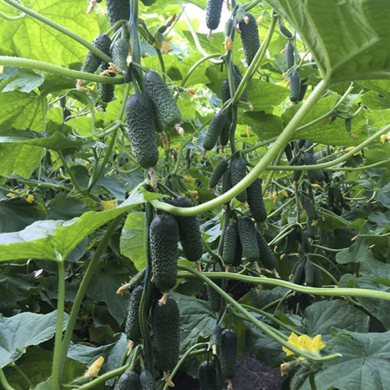Характеристика плодів – Крупнобугорчатий корнішон 10-12 см, зеленого кольору. Плоди мають високу однорідність. Вага – 50-60 г.
