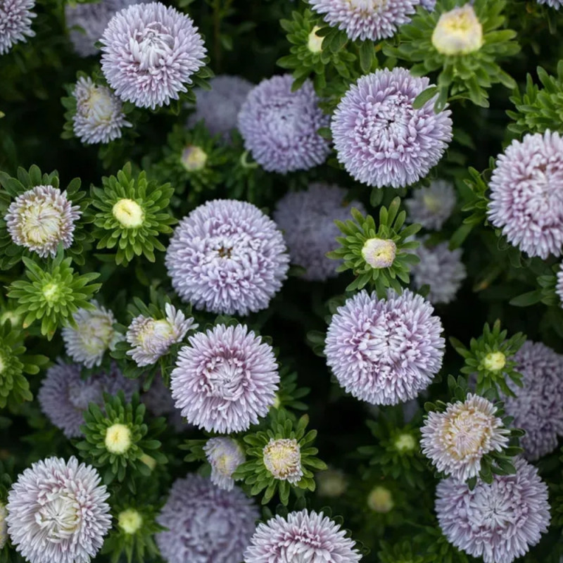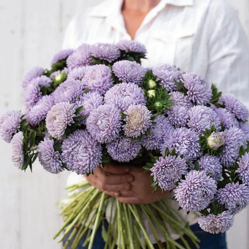 Айстра Леді Корал лавандова (Callistephus chinensis Lady Coral) – високоросла серія, суцвіття якої одночасно нагадує троянду і хризантему.