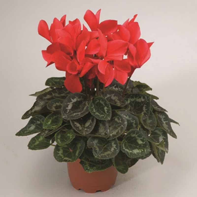 Цикламен Перфетто F1 скарлет (Cyclamen persicum Perfetto F1 scarlet) – багаторічна горщикова рослина до 25 см заввишки.