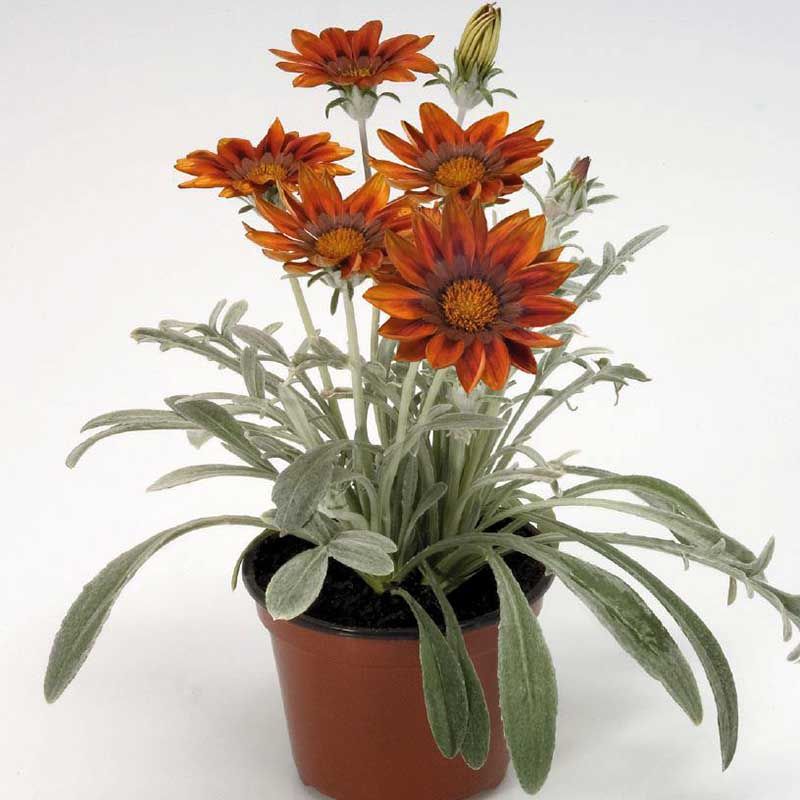 Газанія Талент F1 червона (Talent F1) – компактна багаторічна рослина, яка вирощується як однорічник, з привабливим, сріблясто-білим листям.