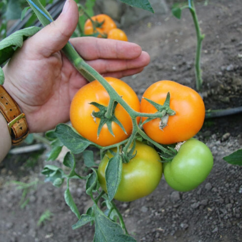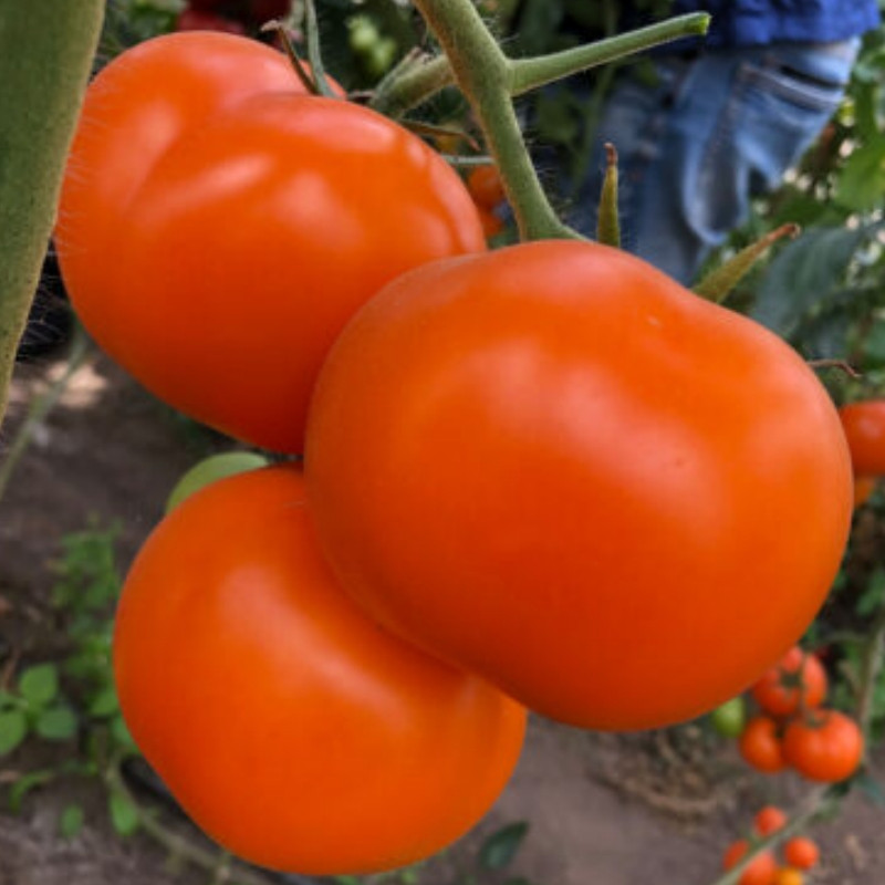 Характеристика плодів – Плоди округло-плескаті, блискучі, оригінального яскраво-оранжевого кольору, щільні і вирівняні. Маса одного помідора – 220-260 г. Мають чудовий смак.