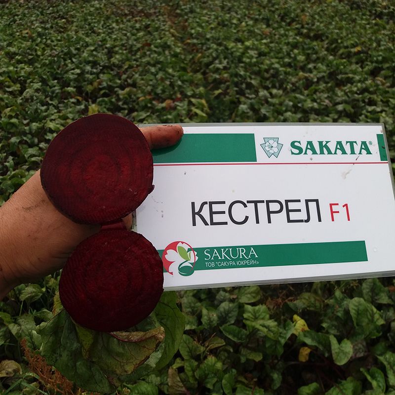 Характеристика плодів – Коренеплоди округлі, вирівняні, гладкі, темно-червоного забарвлення. Вміст цукру 9-12%. Відрізняється слабкою кільцеватістю, високим урожаєм і високою смаковою якістю коренеплодів. Коренеплоди формуються округлої форми з гладенькою поверхнею. Мають стійкий колір після переробки, що дозволяє використовувати його на виготовлення соку та ін. Середня вага коренеплоду 250 г.