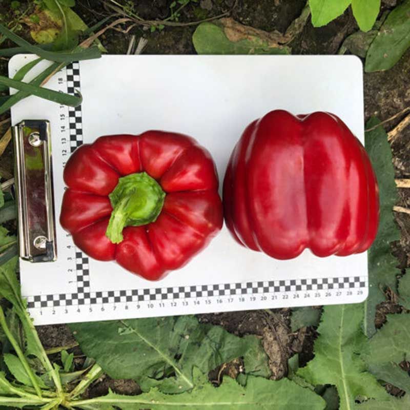 Характеристика плодів – Плоди кубічної форми, 4-камерні, вагою 280-320 г, товщина стінки – до 10 мм. Плоди розміром 11х9 см. Колір від зеленого в червоний. Відмінні смакові якості.