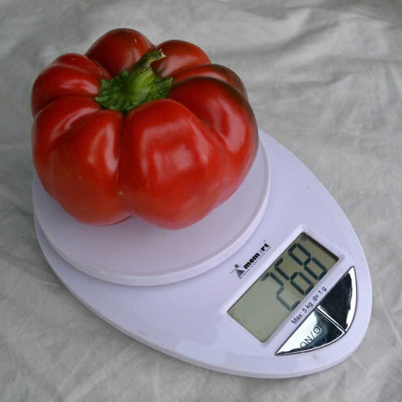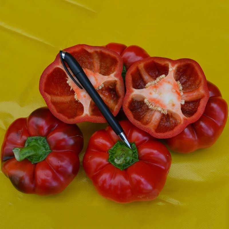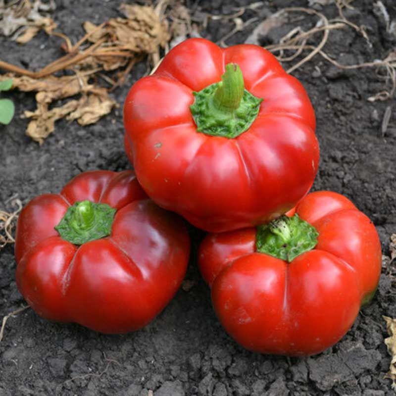 Характеристика плодів – Плоди масою 250-350 г, округлої форми, червоного кольору, щільні, багатокамерні. Товщина стінки – до 12 мм. Високі смакові якості і товарний вигляд.