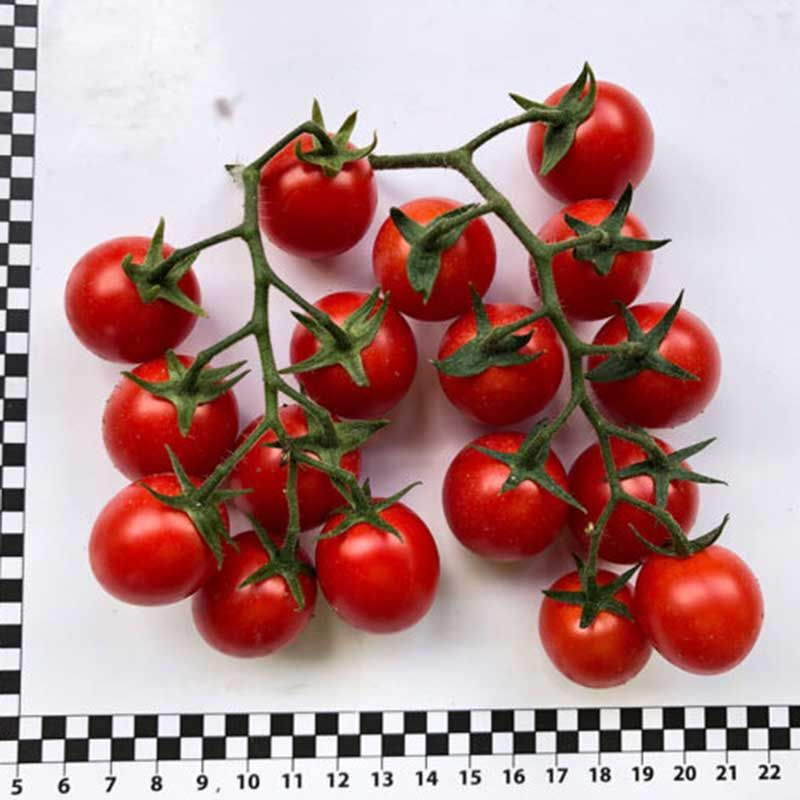 Характеристика плодів – Плоди насичено-червоного кольору, округлої форми. Не розтріскуються. Маса плоду – 15 г. Дуже смачний гібрид.