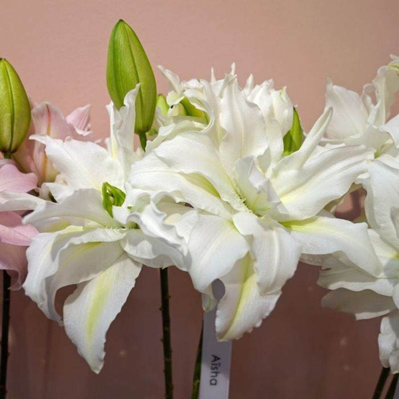 Лілія Аїша (Aisha) 20/22 орієнтально-махрова – цибулинна рослина, яка характеризується швидким ростом і красивими величезними квітками.