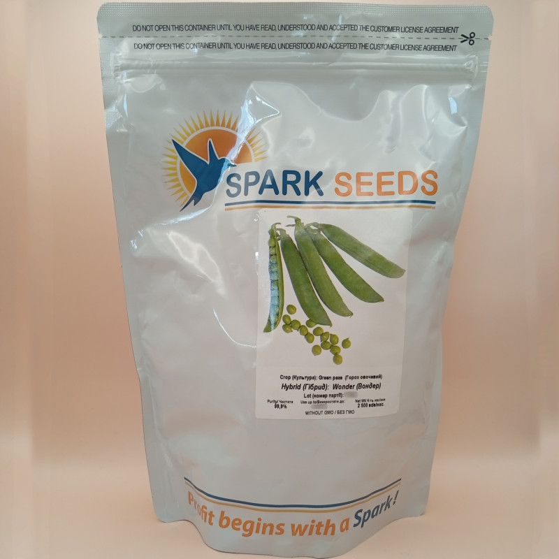 Характеристика плодів – Темно-салатовий горошок. У бобі 8 насінин, діаметром 13-15 мм.