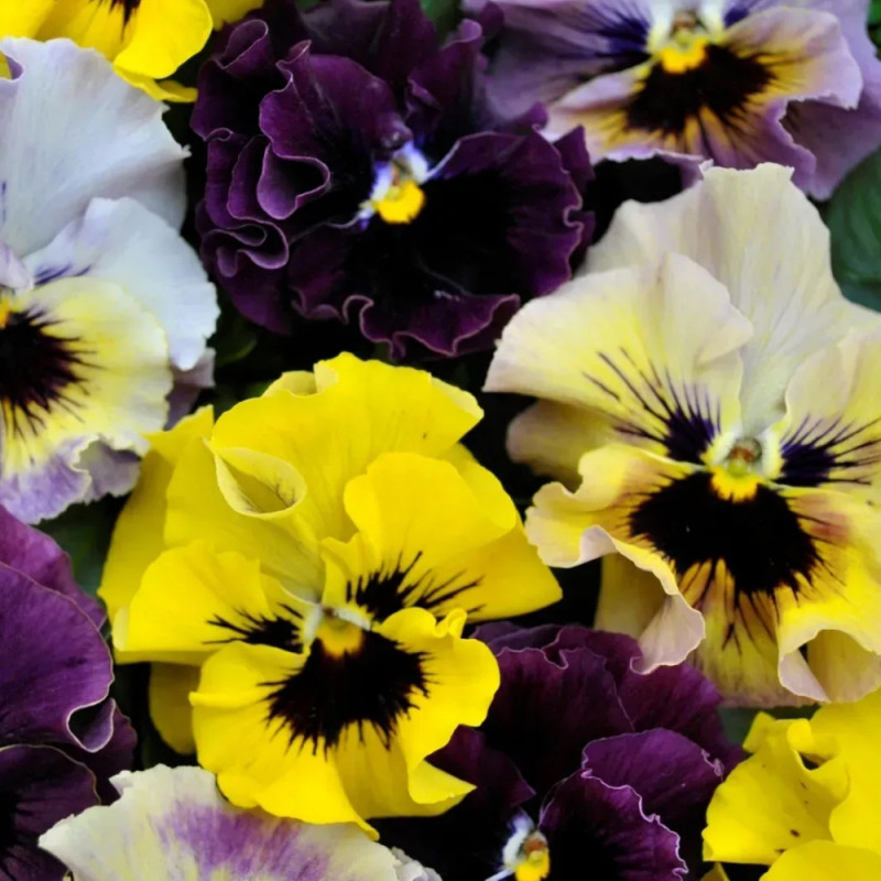 Віола Фрізлі Сізлі F1 (міні) суміш (Viola Frizzle Sizzle F1 Mini mix) – покращений гібрид віоли сорту Рококо, що володіє небаченим гофруванням.