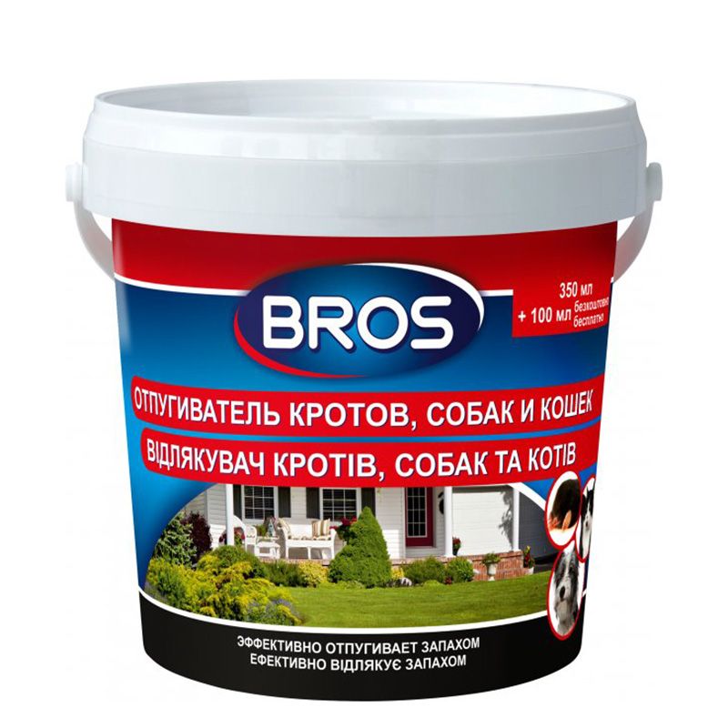 Відлякувач кротів, собак і котів (350 мл + 100 мл) – препарат, який ефективно захищає городи і дитячі ігрові майданчики. Дозволяє уникати загроз для транспорту, які виникають від кротовин на дорогах, алеях, стежках і т.д.