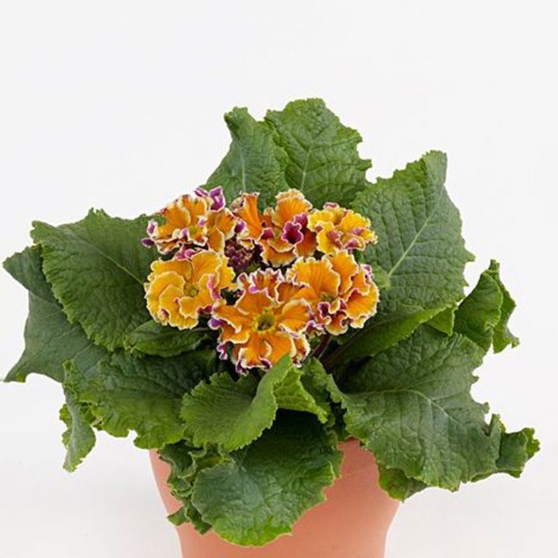 Примула бахромчата Сірококко F1 (Primula Sirococco F1 yellow purple) – серія примули з бахромою по краю квітки унікальних забарвлень.