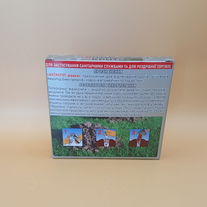 Родентицид Антикрот димова шашка – препарат проти кротів і всіх видів мишоподібних гризунів і сліпців у приватних господарствах.