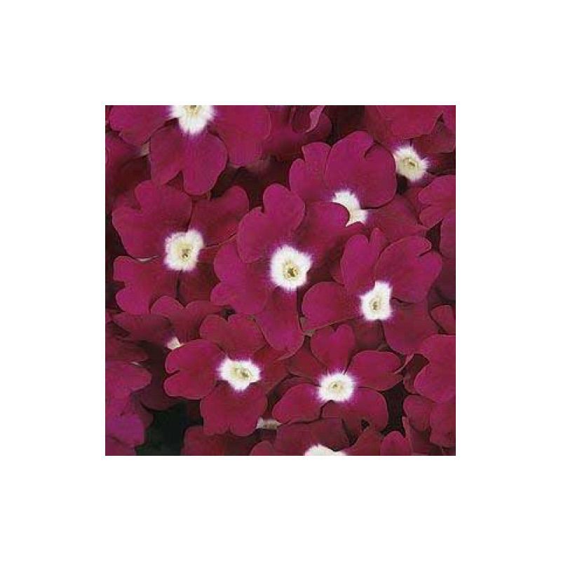 Вербена гібридна Кварц F1 бургунді з вічком (Verbena hybrida Quartz F1) – покращений ранньоквітучий низькорослий гібрид, зацвітає на 7 днів раніше в порівнянні з іншими серіями вербени.