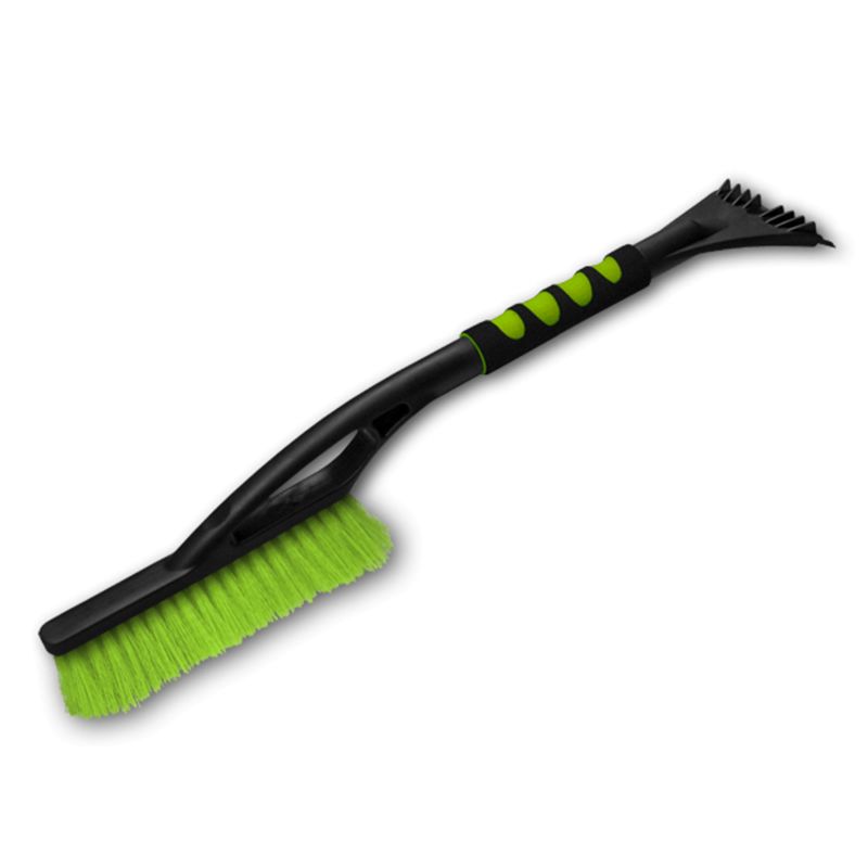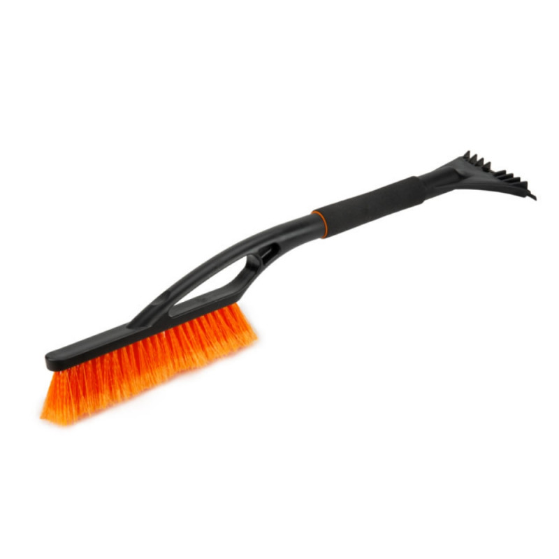 Скребок має щітку для очищення вікон і автомобіля від товстого шару снігу.
