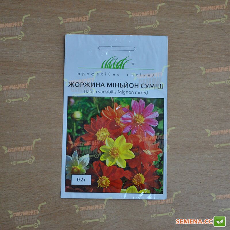 Жоржина Міньйон суміш (Mix) - багаторічна тепло- і світлолюбна рослина, висотою 40-50 см.