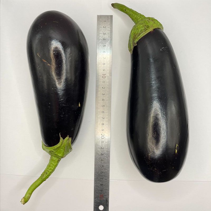 Характеристика плодів – Плоди витягнуто-овальні, 18-22 см у довжину і вагою, як правило, 250-300 г. Баклажани глянцеві, темно-фіолетові, у розрізі щільні, світло-зеленуватого відтінку. Насіння в м'якоті небагато і вони дуже дрібні. Плодоніжка без шипів.